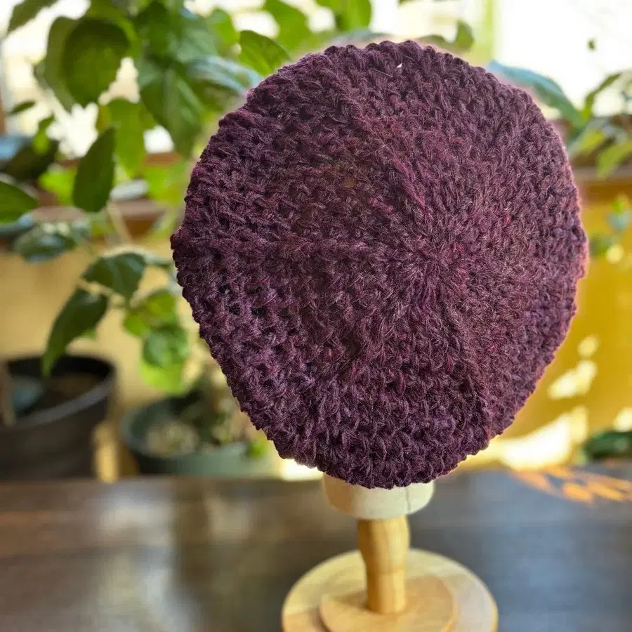핸드메이드 손뜨개실로 짠 니트 베레모 와인 적자색 H-2