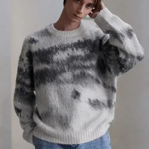 [ CLEL ] 알파카 블렌드 샤기 니트 XS 라이트 그레이 계열
