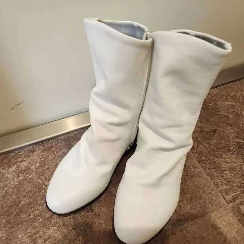 화이트 사이드 지퍼 부츠 중 힐