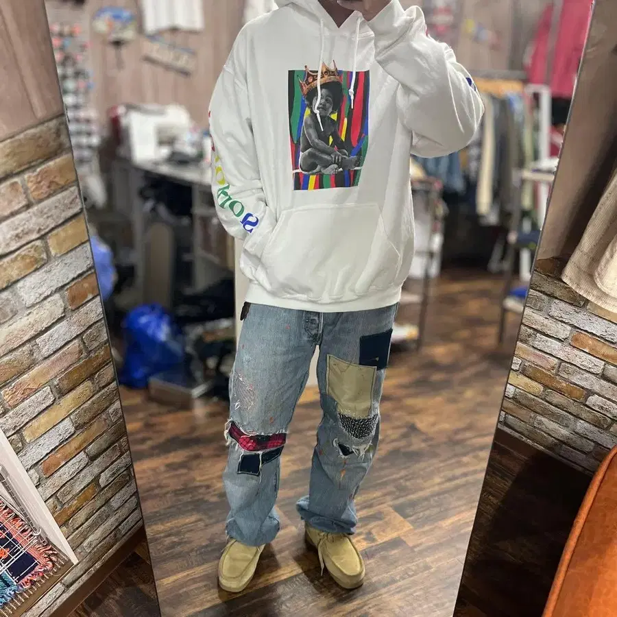 노토리어스 비기 B.I.G 컬러풀 프린트 후드 부착 후드티 L