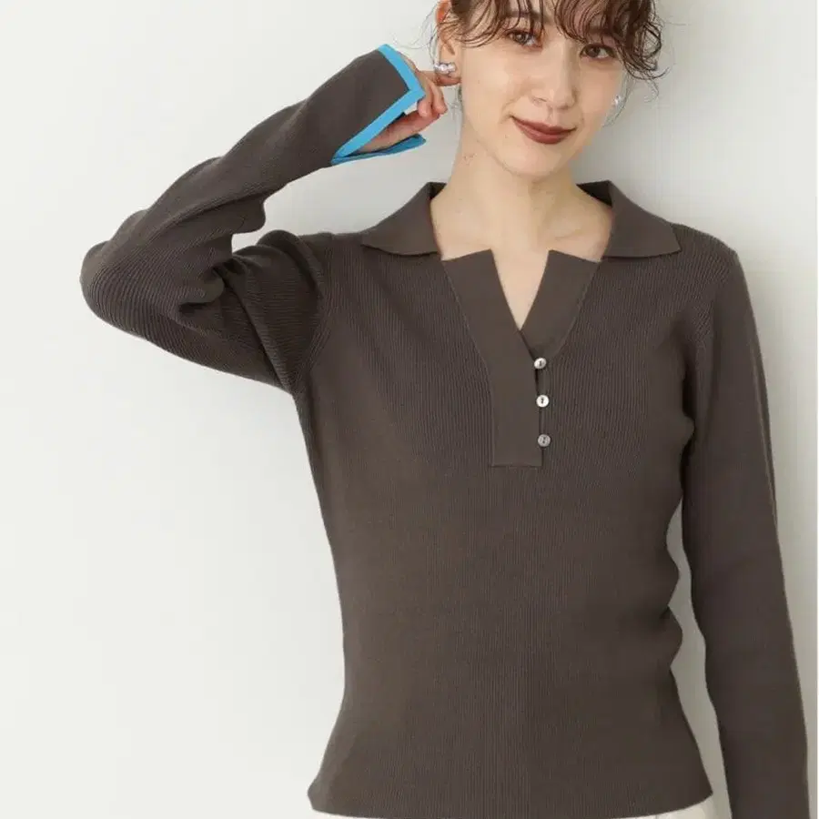 N. NATURAL BEAUTY BASIC 바이컬러 라인 긴팔 폴로 니트