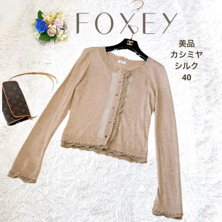 새상품급 폭시 부티크 실크 캐시미어 니트 가디건 베이지 L