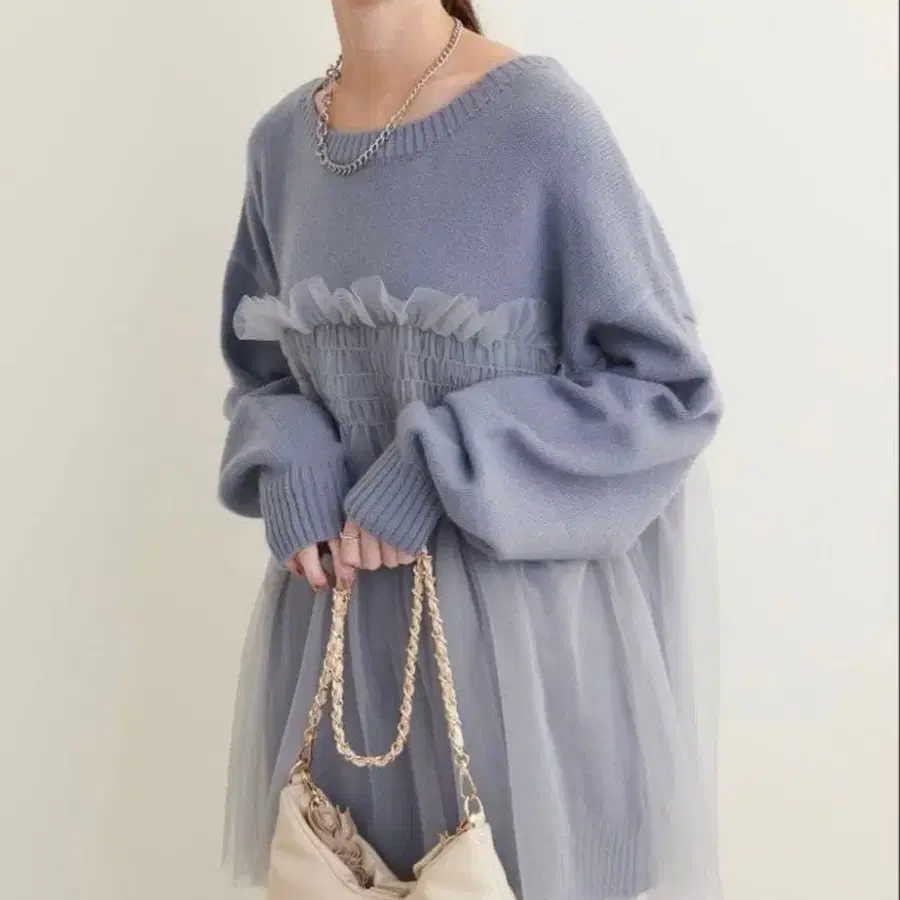 새상품 natural couture 튤 레이어드 니트 풀오버 F