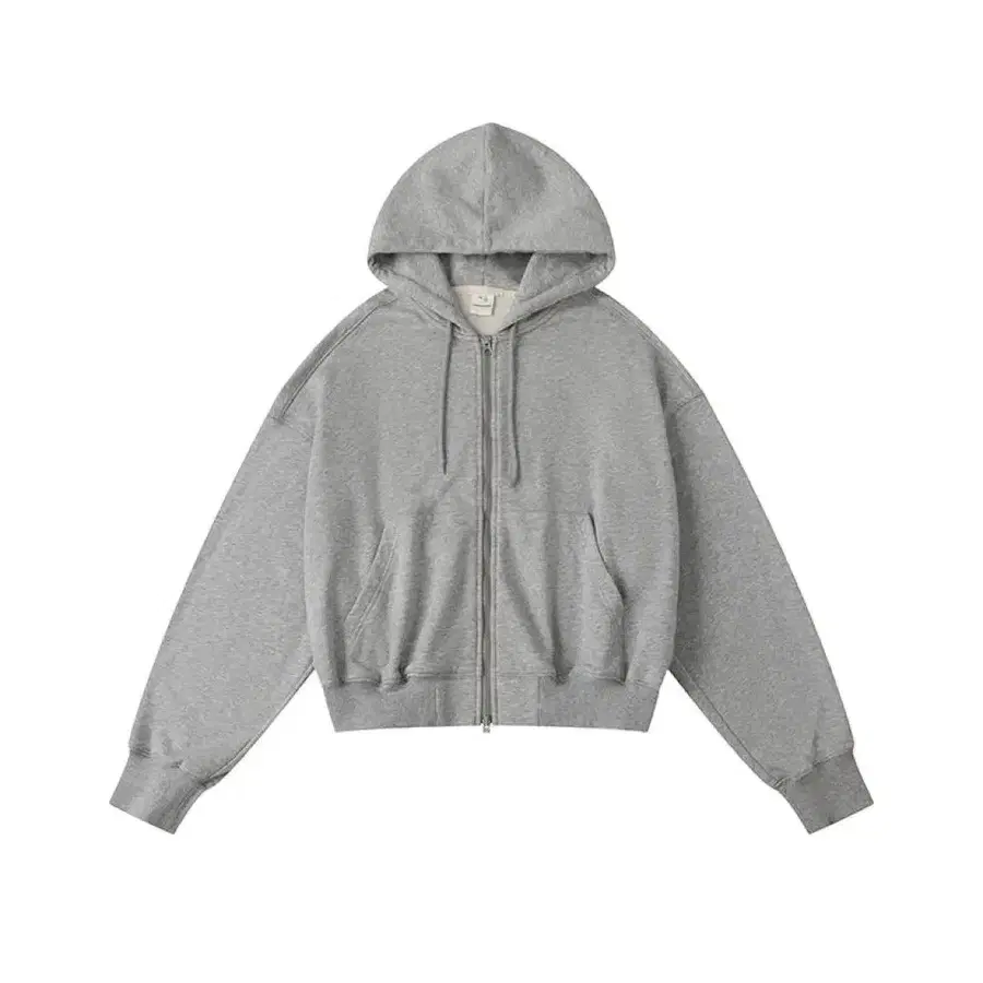 Nnine 그레이 짧은 기장 후드 부착 후드티 L