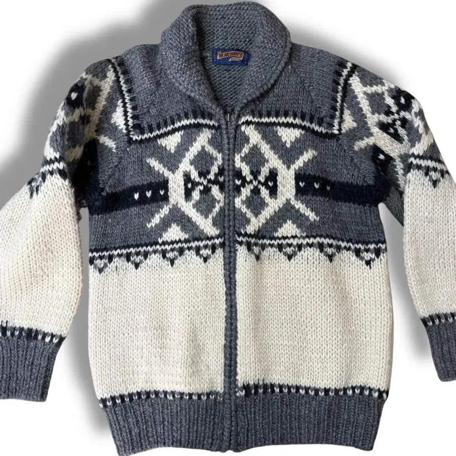 L 마초프 카우치 스웨터 노르딕 무늬 집업 두툼한
