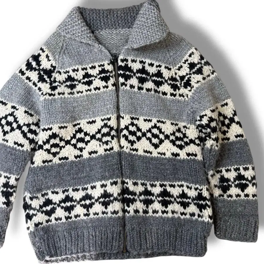 XXXL 사이즈 코위찬 니트 카우친 스웨터 집업 두툼한 노르딕 무늬