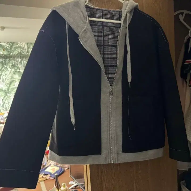 캐주얼 후드 부착 후드티 블랙과 그레이