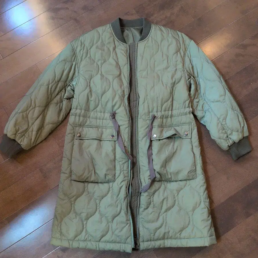올리브 그린 퀼팅 롱 코트 새상품