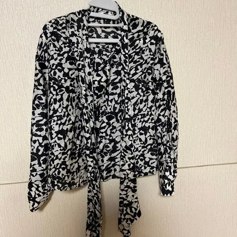 ZARA 여성용 화이트 블랙 애니멀 프린트 긴팔 셔츠