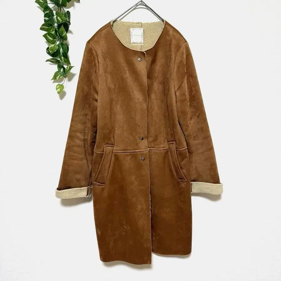 어반 리서치 페이크 무스탕 코트 카멜 보아 안감 노카라 코트