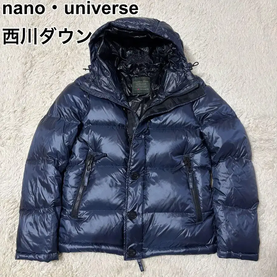 다운 자켓 광택 네이비 블루 후드 두꺼움
