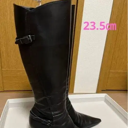 소가죽 블랙 스틸레토 롱 부츠