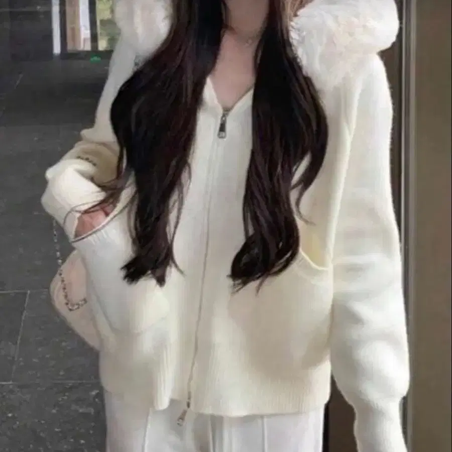 SHEIN 퍼 후드티 니트 스웨터 아우터 여성용 XL