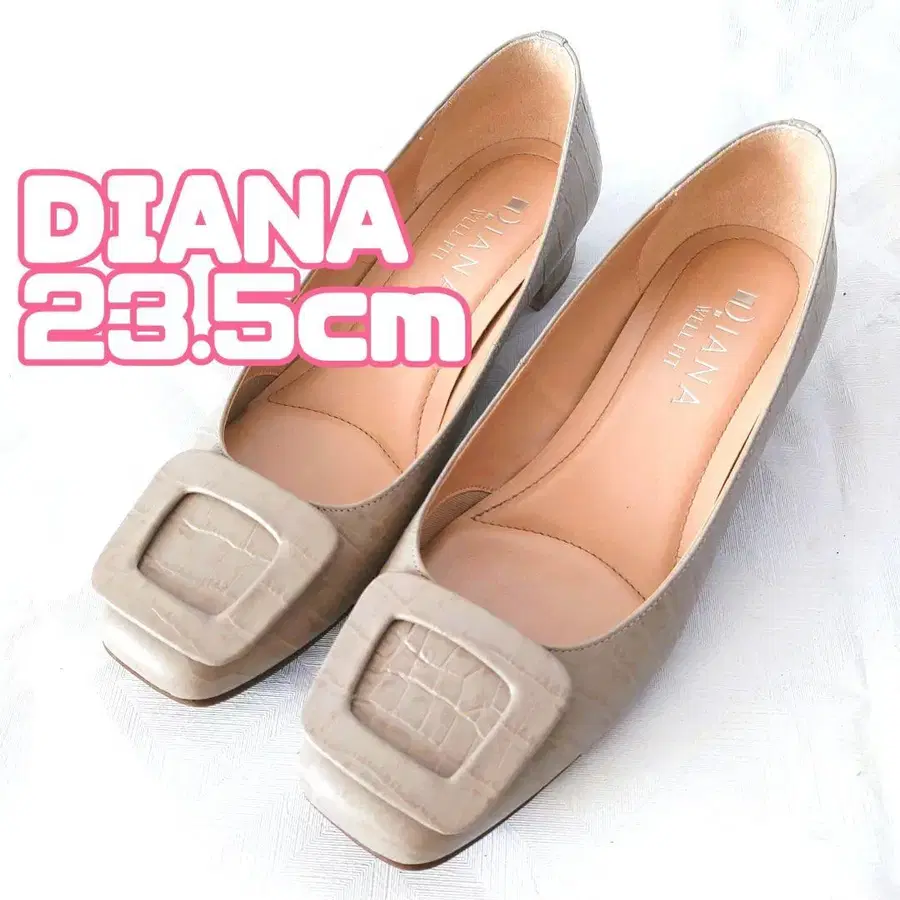 컨디션 최상 DIANA 웰핏 악어 엠보싱 비쥬 스퀘어 펌프스