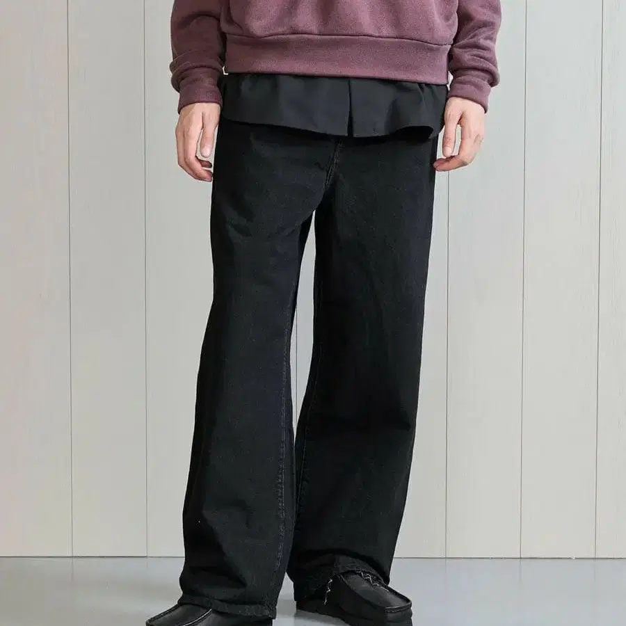 [ H ] 블랙 데님 1 플리츠 배기 팬츠