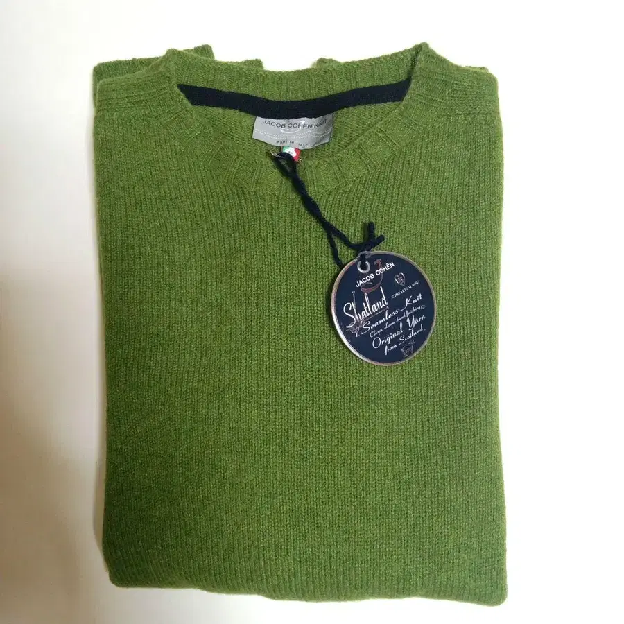 미사용 JACOB COHEN 크루 넥 울 니트 M 라임 그린