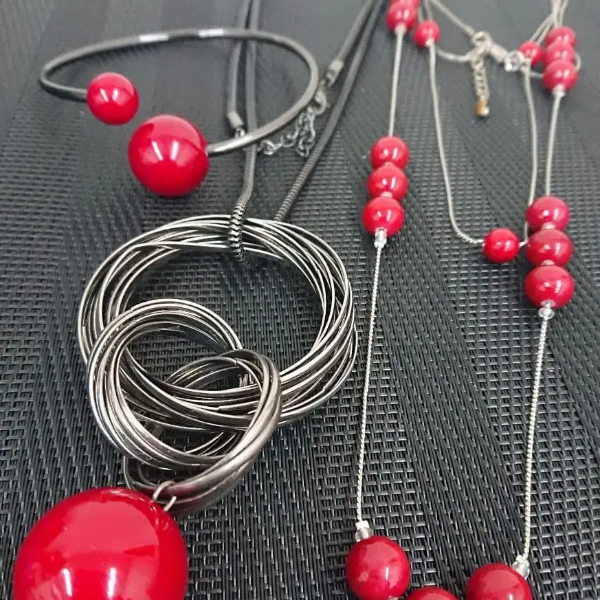 B 레드 홍색 3종 세트 롱 목걸이 뱅글 세트 이중