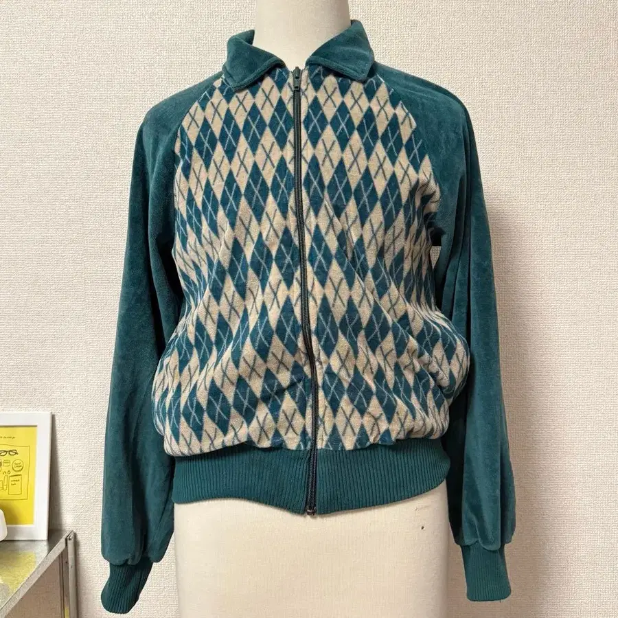 트랙 자켓 벨로아 소재 구제 의류 Ssize 그린 체크 무늬