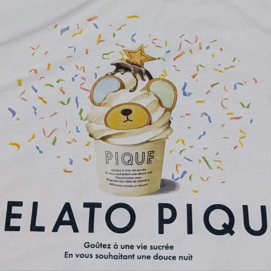 젤라또피케 옴 인레이 소프트 크림 베어 프린트 롱 T 아이보리 M