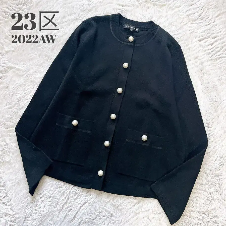 23구 온워드 VINGT-TROIS ARRONDISSEMENTS 가디건 니트 펄 버튼 검정 블랙 크루넥 고급 깔끔 페미닌 성숙/러블리 출퇴근 오피스 포멀 세레모니 입학식 졸업식 시치고산 발표회 겉옷 레이어드 베이직 스테디셀러 심플 고급스러움 울 혼방