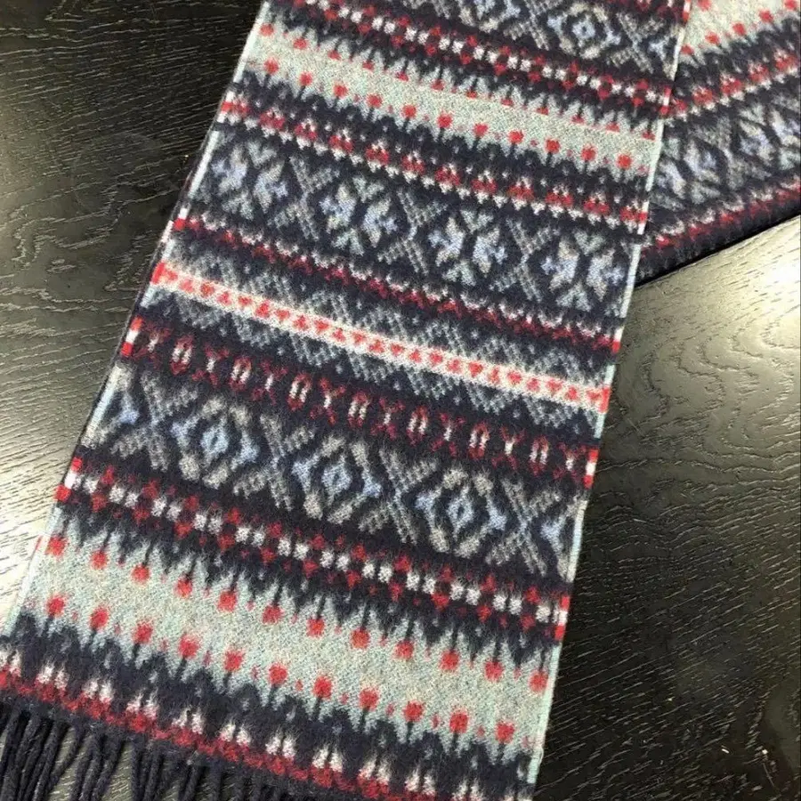 미사용 새상품 남녀 공용 캐시미어 머플러 네이비 페어아일