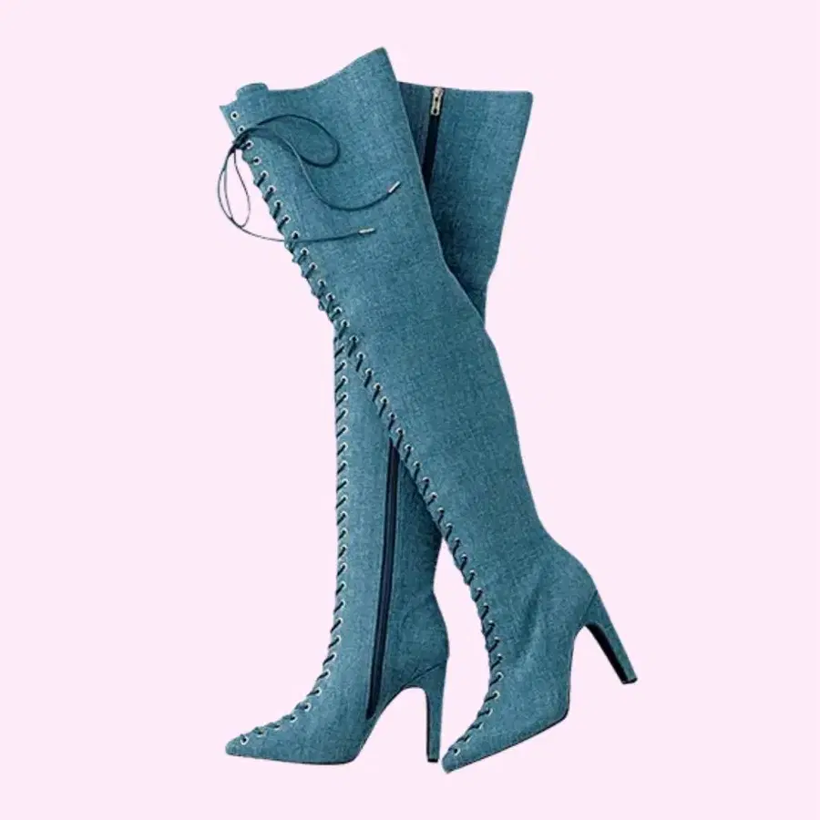 Yello 레이스업 데님 니하이 부츠 M