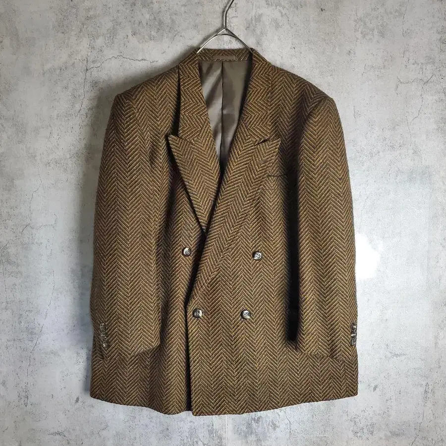 [ 빈티지 ] 구제 의류 테일러드 자켓 더블 헤링본 브라운 레트로