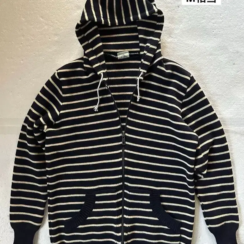 세인트 제임스 70s 풀 집업 보더 니트 후디 네이비 x 베이지 M 상당
