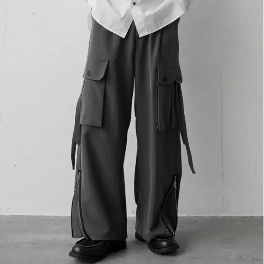 casper john 차콜 그레이 카고 팬츠 지퍼 포함