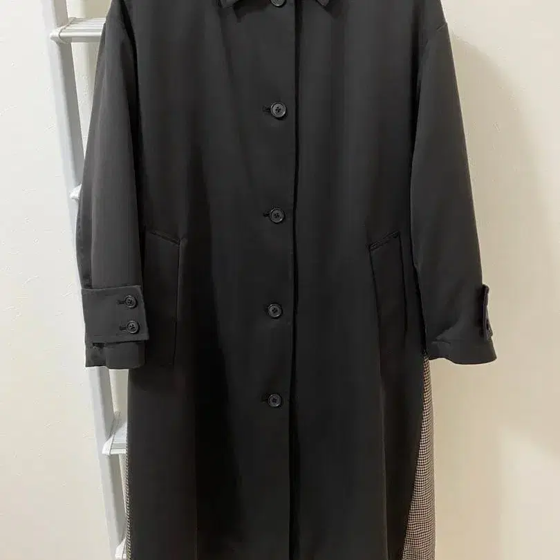 새상품급 하레 라이너 포함 스텐카라 코트 절개 코트 블랙 체크