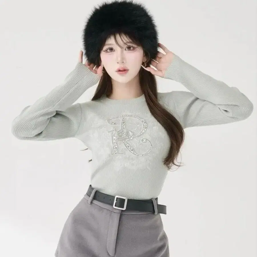 다리치 DR 비쥬 플라워 리브 니트탑 GRY