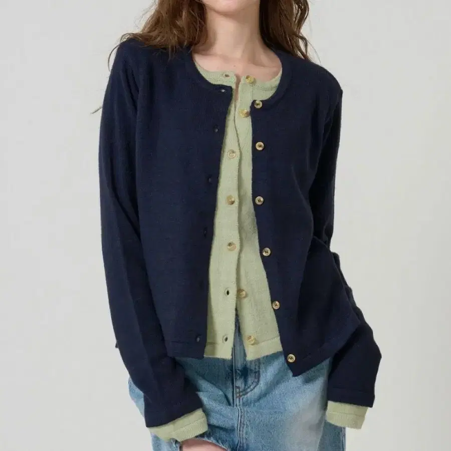 레이어드 스타일 바이컬러 니트 가디건 TINA: JOJUN