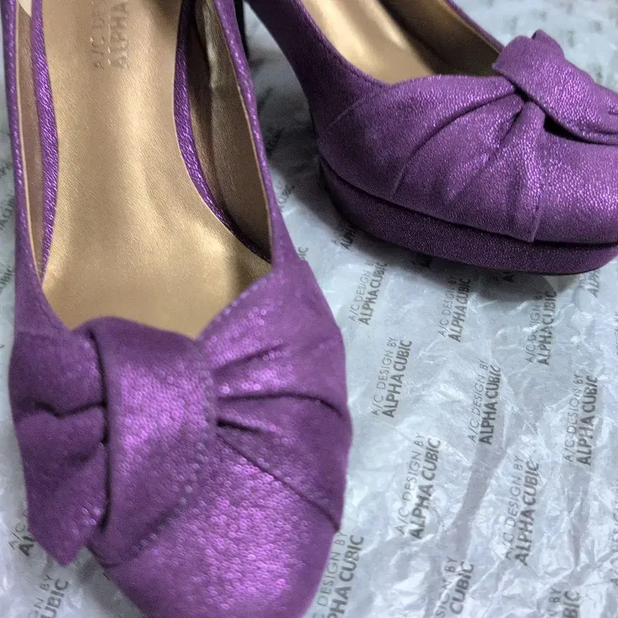 퍼플 글리터 하이힐 리본 포함