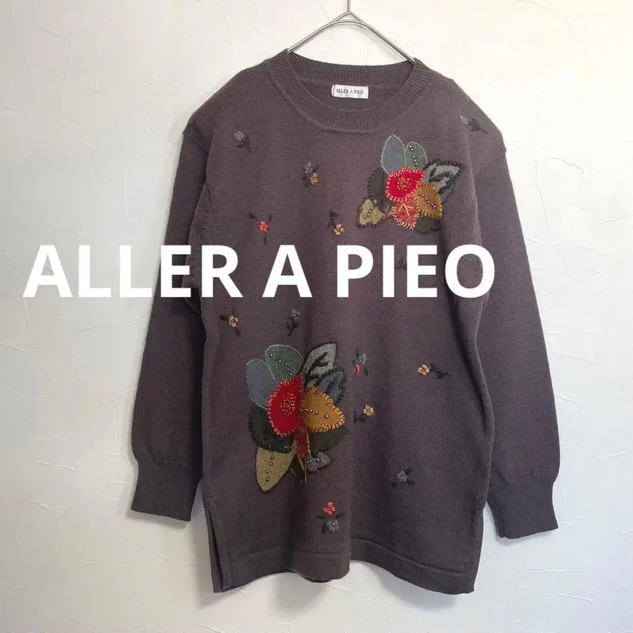 90s~ 레트로 플라워 데코레이션 디자인 니트 빈티지 브라운