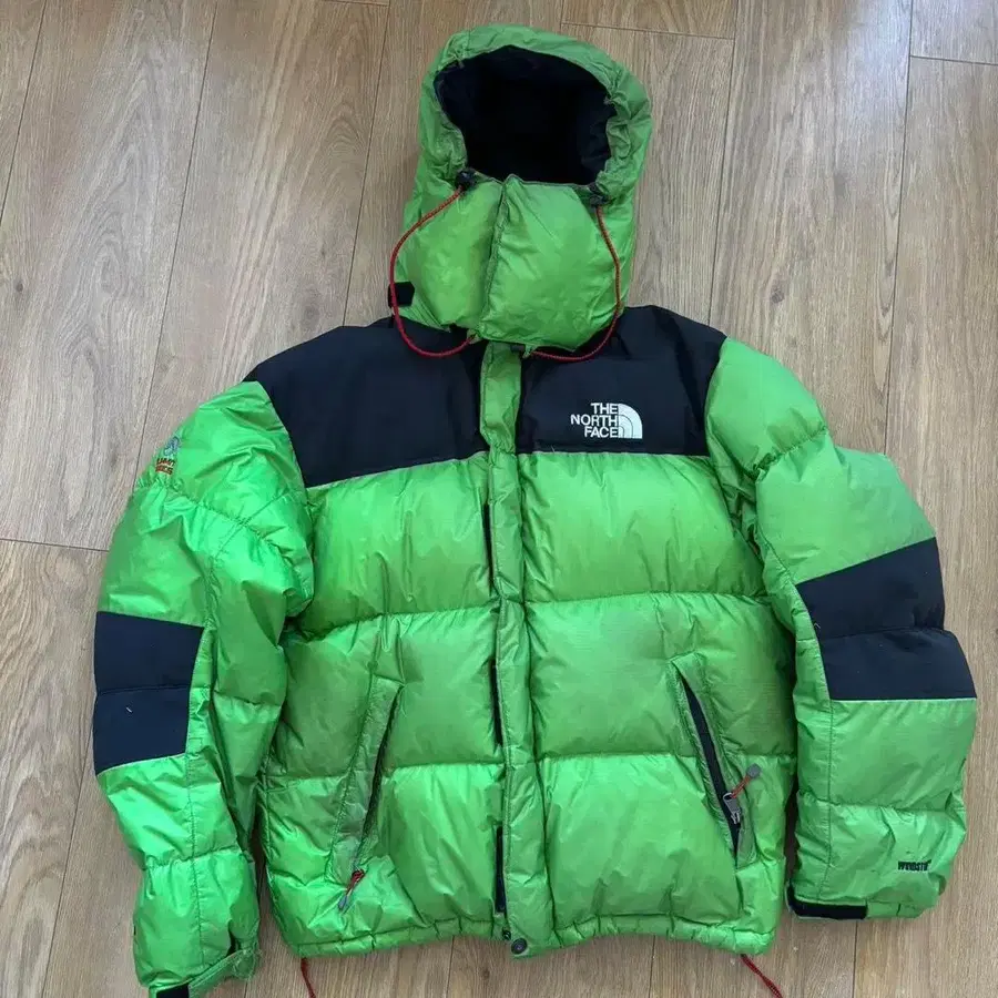 THE NORTH FACE 후드 부착 다운 자켓 그린/블랙