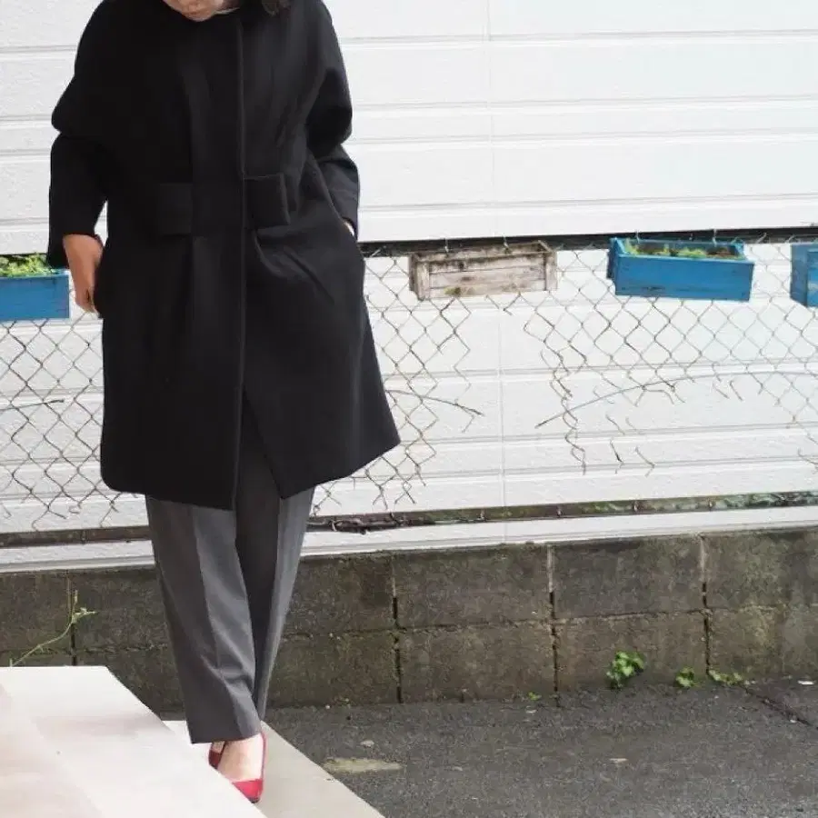 peu pres 슈퍼100 노카라 허리 리본 코트
