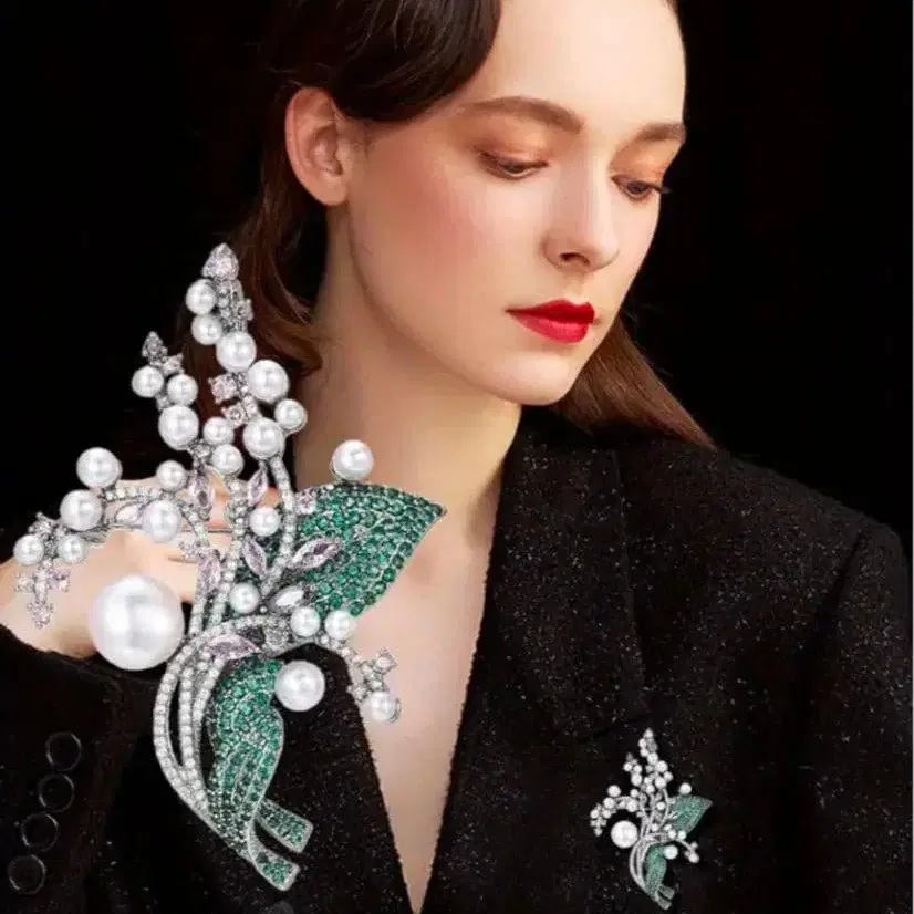 졸업식이나 입학식 등 격식 있는 의상에 코사지를 달았지만, 이처럼 조금 럭셔리한 브로치로 바꾸면 매우 세련된 분위기를 연출할 수 있을 것입니다.