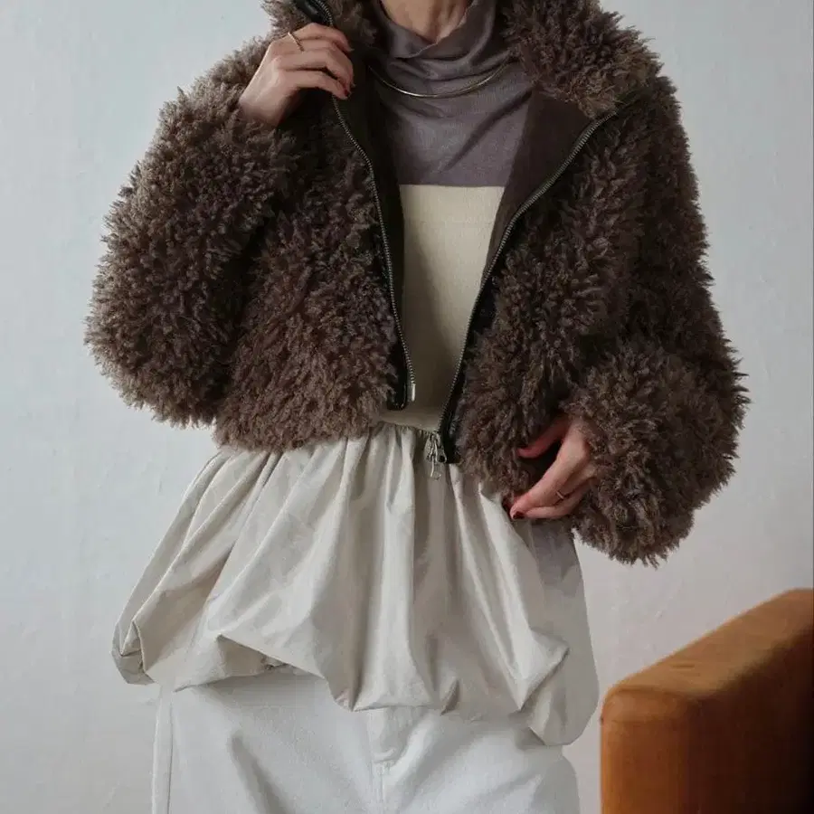 푸들 퍼 W 지퍼 크롭 자켓 아우터