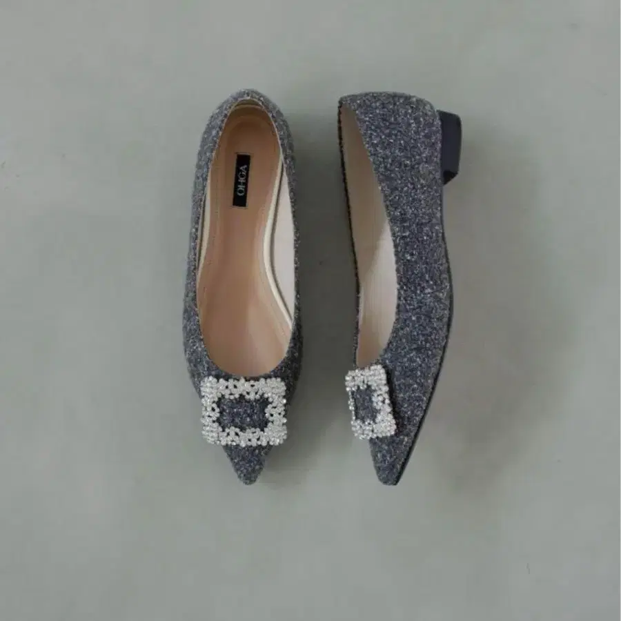 OHGA 오우가 비쥬 트위드 펌프스 플랫슈즈 그레이