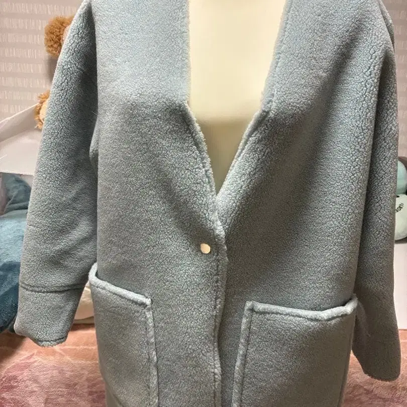 페이크 무스탕 프리 사이즈 라이트 블루 리버서블