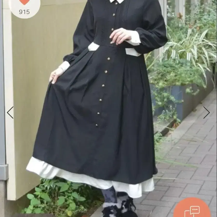 axesfemme 옷깃 디자인 단추 바이컬러 원피스 블랙