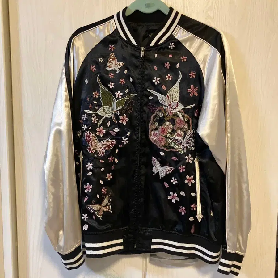 미야비유이 꽃 나비 자수 스카잔 블랙 화이트 긴팔