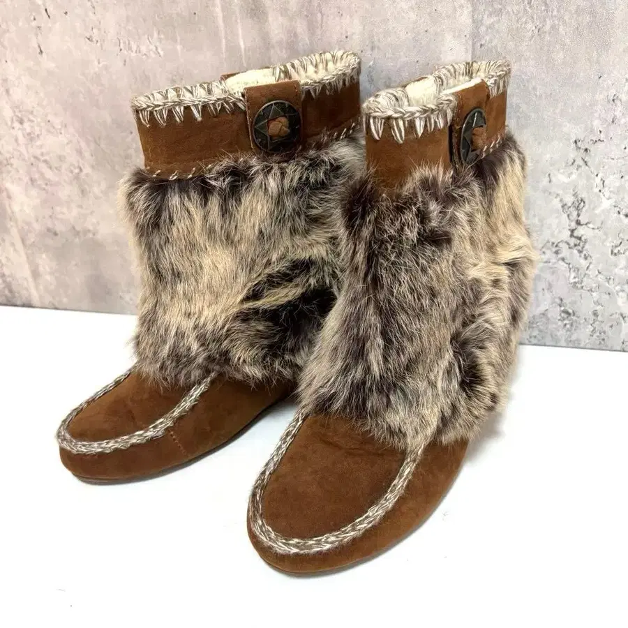 새상품급 에스닉 퍼 부츠 브라운 L 사이즈 내 보아