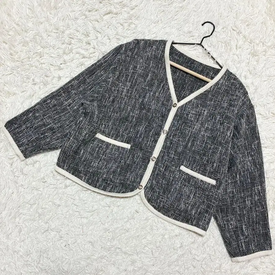 • ESTNATION 트위드풍 니트 가디건 38 화이트 블랙