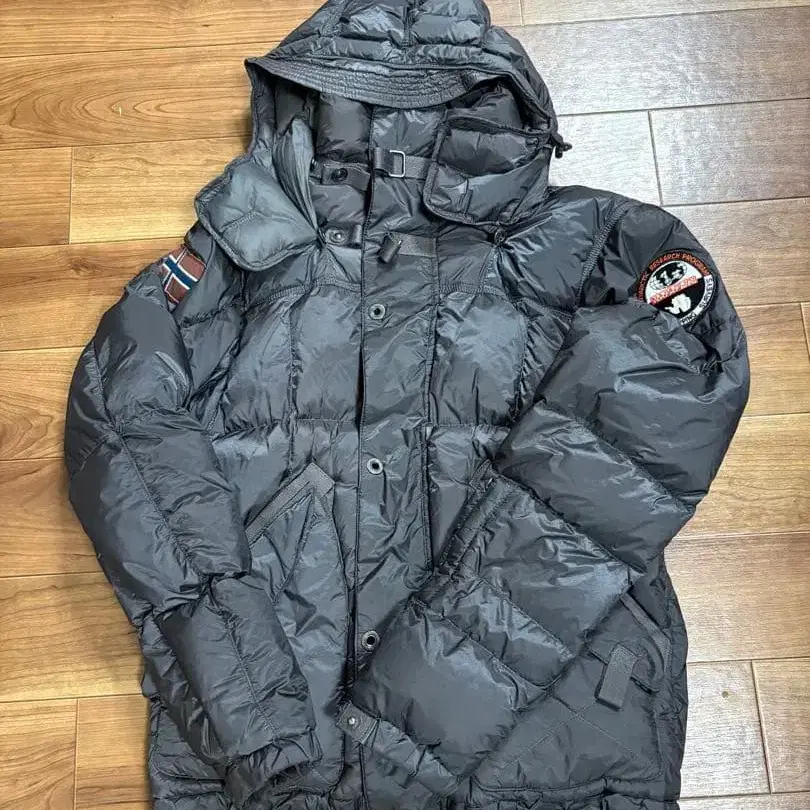 NAPAPIJRI 다운 자켓 그레이 후드 부착