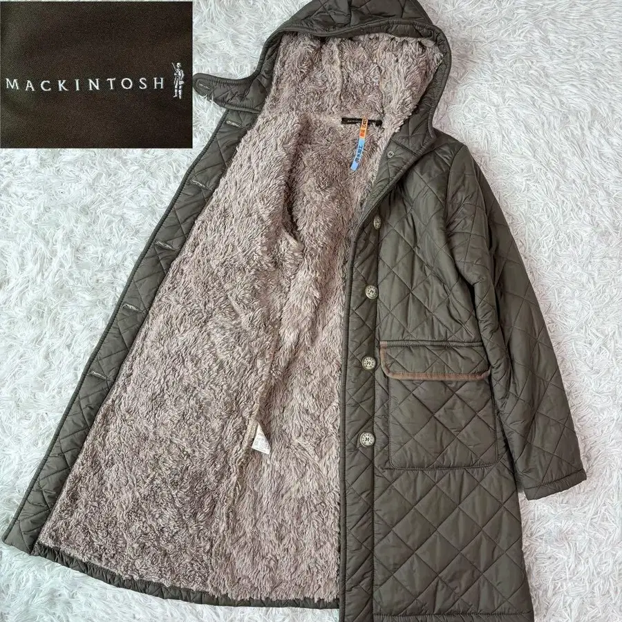 컨디션 최상/인기 카키 매킨토시 퀼팅 코트 보아 안감 후드 부착