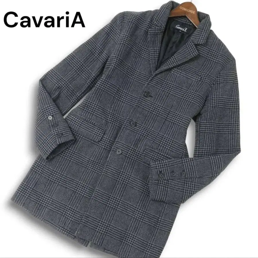 CavariA 글렌체크 패턴 체스터 코트 그레이