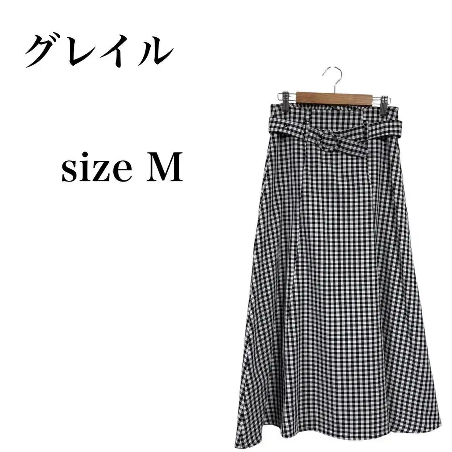 GRL (그레일) 깅엄 체크 벨트 포함 롱 스커트 M 사이즈