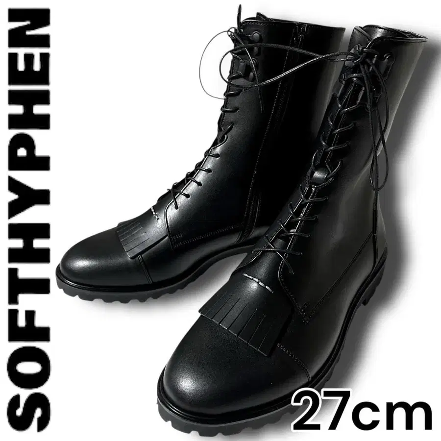 새상품 SOFTHYPHEN 소프트하이 MISTERGENTLEMAN 미스터 젠틀맨 SAKIAS 5-LES 정가 8.5만 일본제 MADE IN JAPAN 경량 쿠션성 탱크 밑창 밀리터리 스타일 x 드레스 스타일 태슬 레이스업 부츠 가죽 부츠 27cm 평소 사용 타운 유스 블랙 계열 z5025