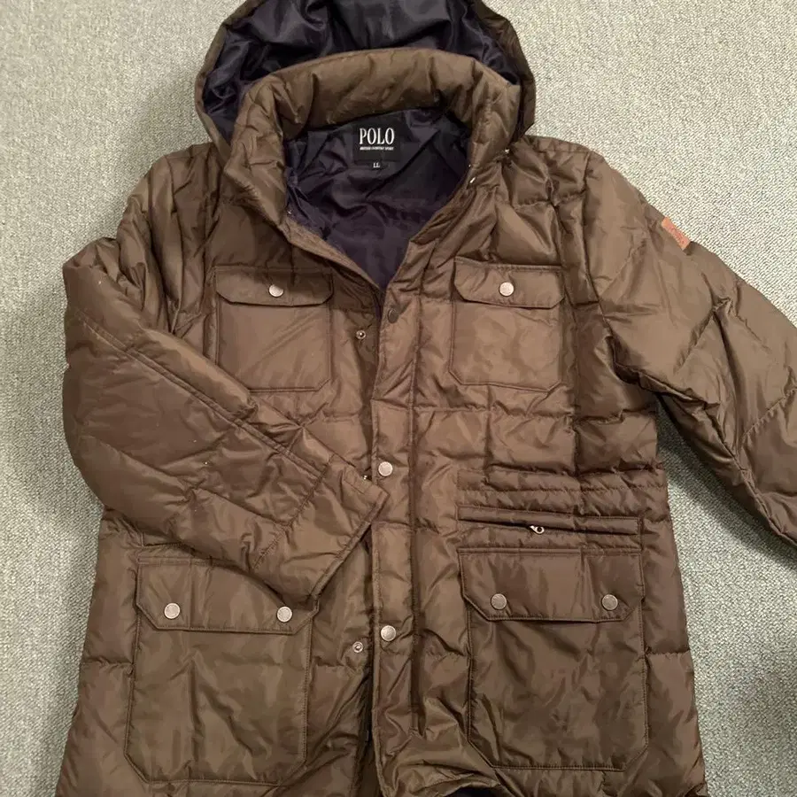 POLO 다크 브라운 후드 부착 다운 자켓 L.L.